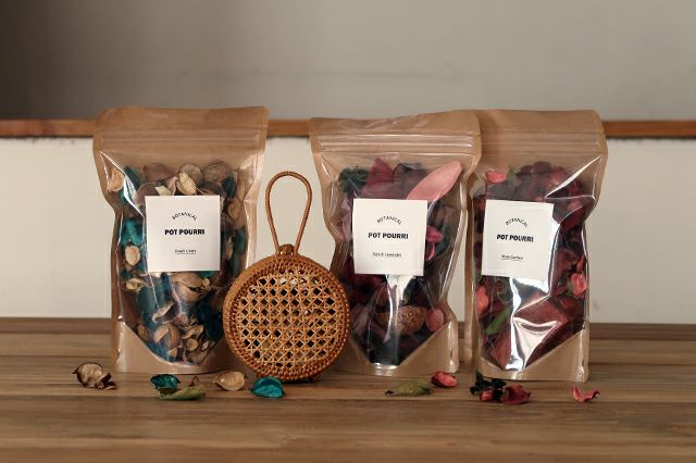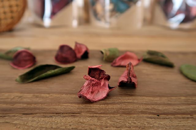 植物の美しさを感じる事ができるポプリは、乾燥させた植物にフレグランスを贅沢に使用して香りつけしています。大きめサイズのボタニカル素材は、見た目にも美しく彩りよく飾っていただけます。器に入れて飾ったり、袋に入れてクローゼットに入れたり、ワックスサシェの部材にもご利用いただけます。お好みの香りを見つけて、お部屋に飾ってお楽しみください。