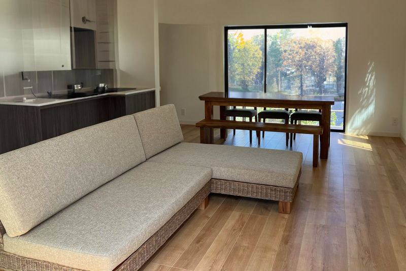 NUU SOFAのコーナーソファは、一人暮らしにもぴったりのアイテムです。広々とした座面でリラックスしたり、クッションを組み合わせて二人掛けとしても利用可能。急な来客にも対応できる、機能性とデザイン性を兼ね備えたソファです。