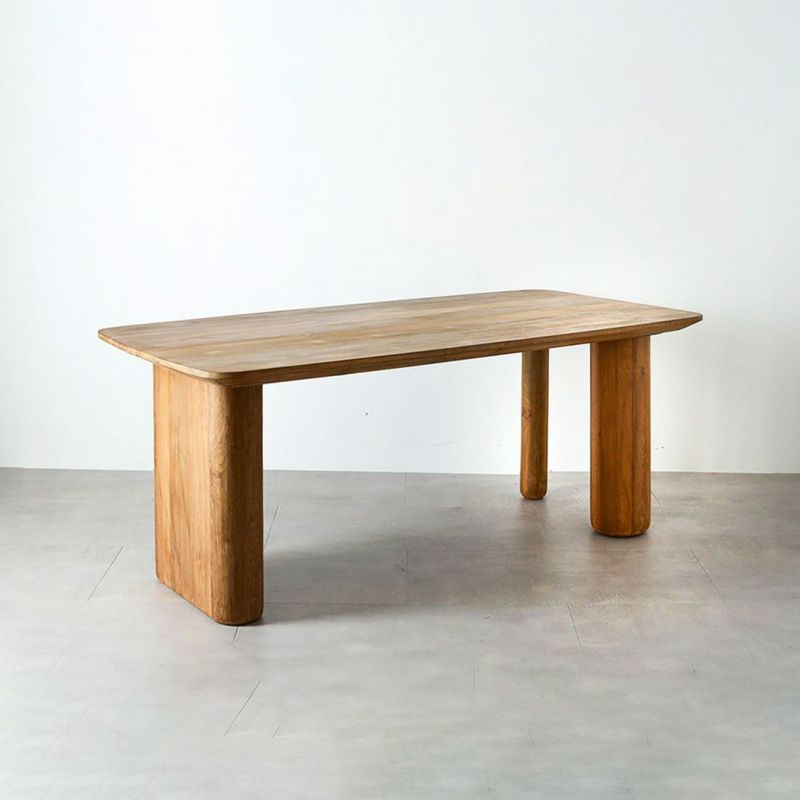 3本脚は片側を大きく取っているので、しっかりした安定感があります。太めの脚でも角をラウンド型にすることで重さを感じさせません。また天板の角も同じく柔らかなラウンドに仕上げているので、全体的にすっきりとした開放感があります。