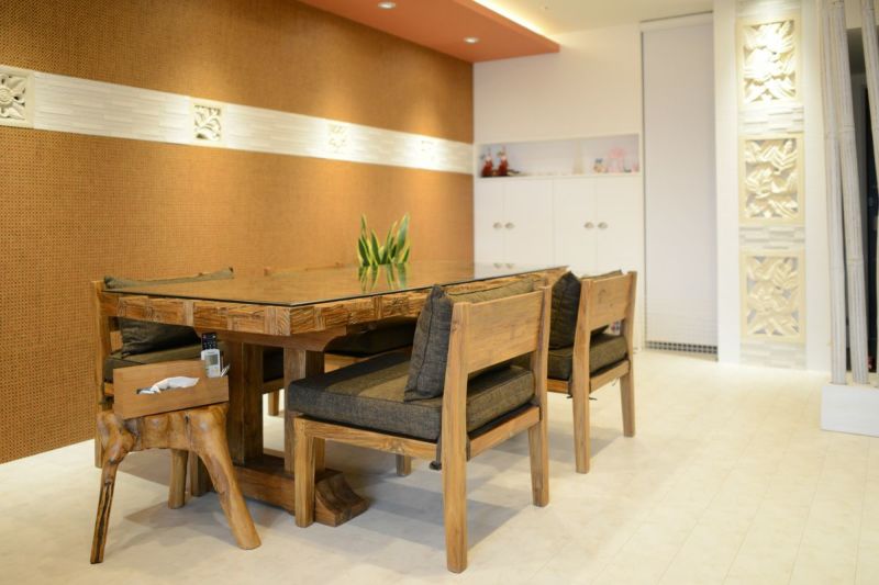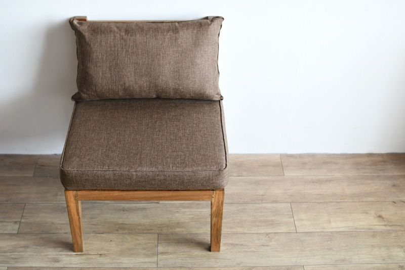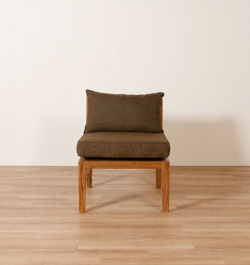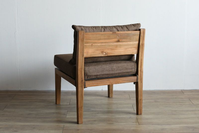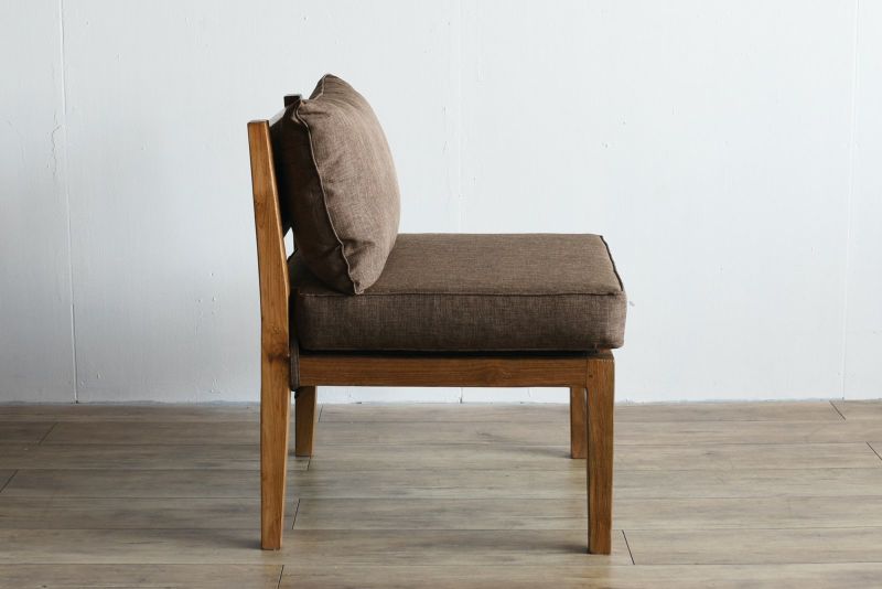 ダイニングチェアにしては大きめのサイズ。一人掛けですが、1.5人分ほどの座面の広さがあります。ダイニングにあわせなくとも、リビングで一人掛けのソファとして使うのも、もちろんおすすめ。上質なチーク材で作られたソファは、リラックス空間にマッチします。