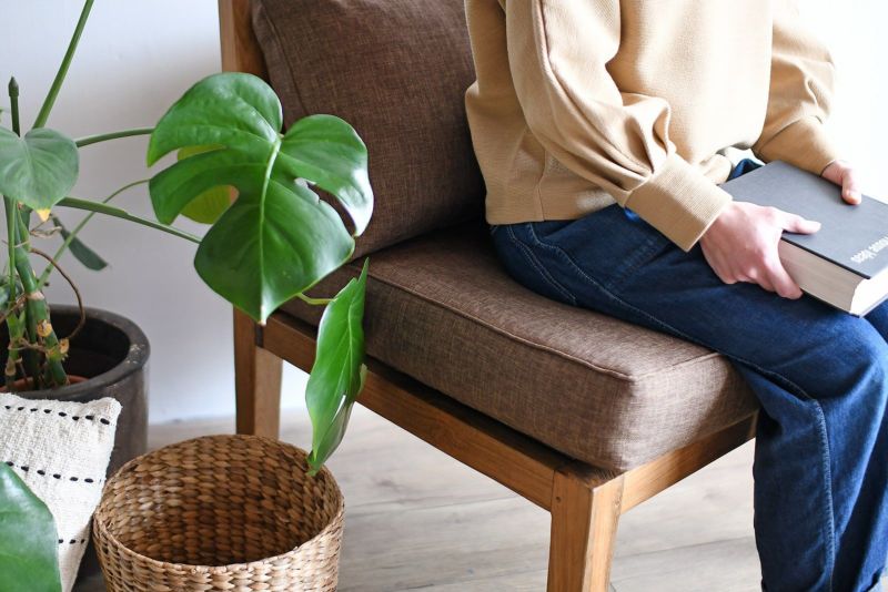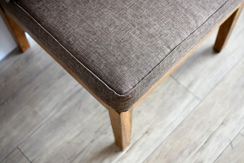 ダイニングテーブルに合わせられるソファを作りました。ゆったりとした座面のサイズに、厚めのシートを、座面と背面にもつけた一人掛けのソファです。座面はウレタン素材。ウレタンは適度な硬さがあり、沈み込みが少ないため体重をしっかり支えてくれます。長時間座っていても、疲れにくい座り心地を実現します。リビング兼ダイニングスペースに最適。ダイニングでもテレビを見たり、本を読んだりするというライフスタイルの方にぴったりです。
