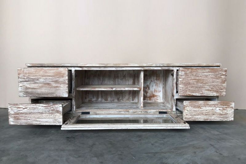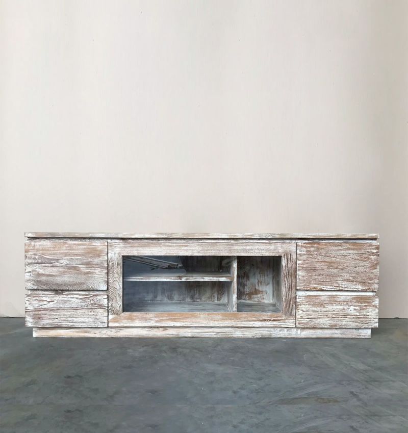 チーク古材の質感を存分に生かしながら、機能性も兼ね備えたTVボード