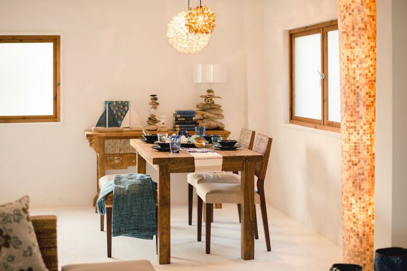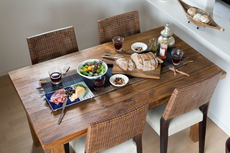 お部屋の雰囲気に自然と馴染むスタンダードなダイニングテーブルです。リゾートのような安らぎのシーンを作りたいなら、ラタン(籐)のチェアを。シンプルでオーガニックの印象に仕上げたいならウッドのチェアを。
