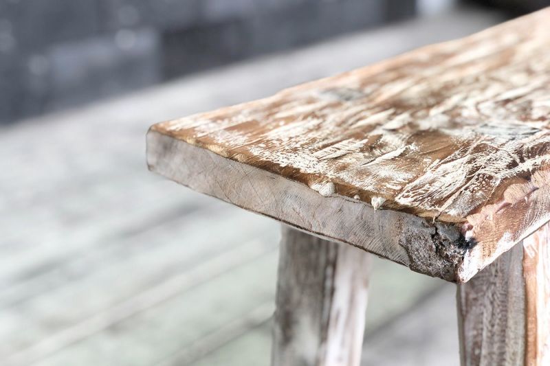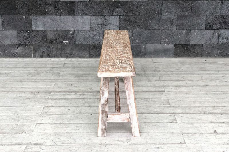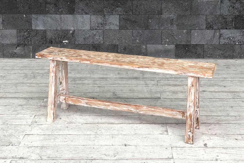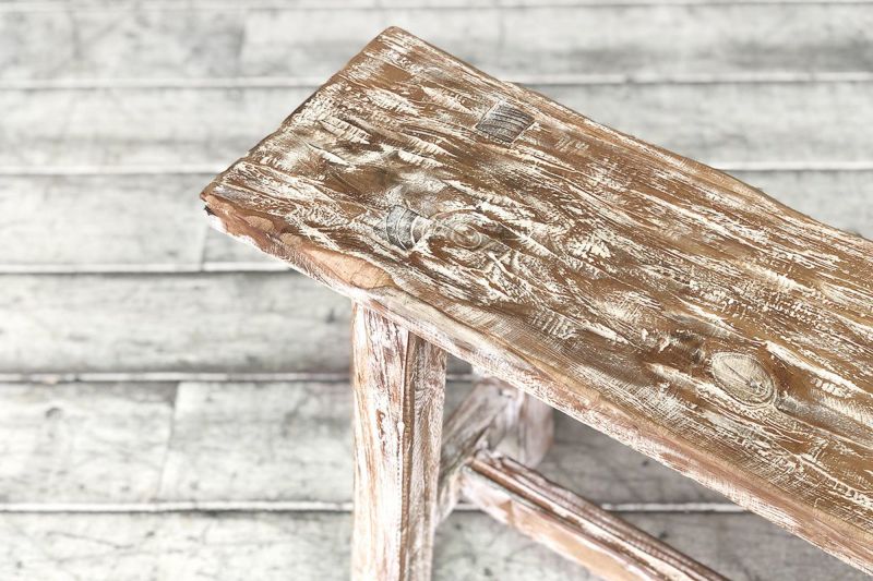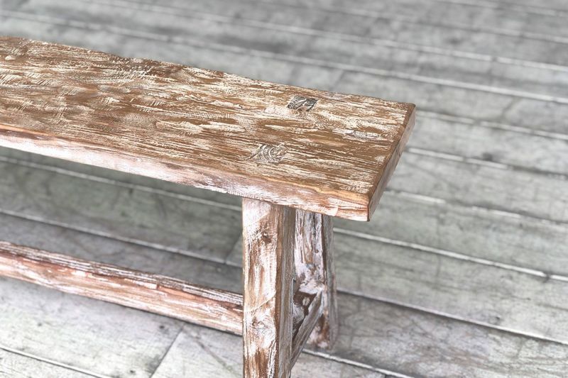 チーク古材ベンチ ホワイトウォッシュ (W120)