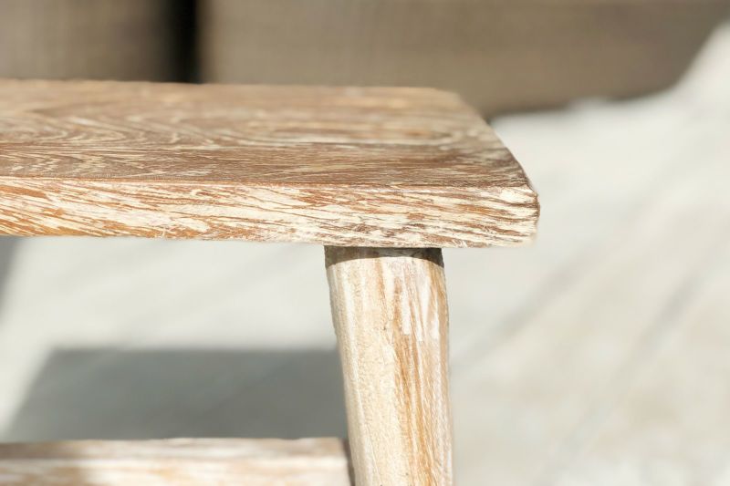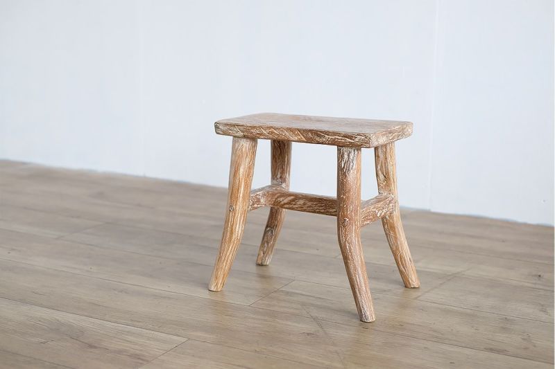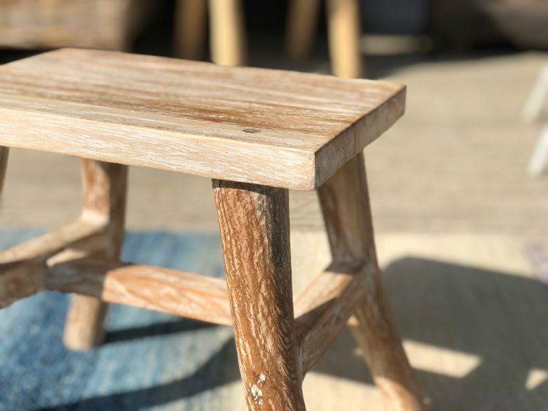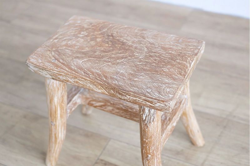 サイドテーブルや、植物台に、ひとつあると便利な小さめベンチです。ロータイプのソファに合わせて小さなサイドテーブルとしても使用可能。コンパクトなサイズと軽さで持ち運びも楽々です。グリーンがお好きな方には、植物台としてもオススメ。無垢の質感が、植物の生き生きとしたグリーンや、色とりどりの花々をより一層引き立ててくれます。 チーク材にホワイトウォッシュ加工を施し、まるで長年使い古されたかのような風合いに仕上げています。明るく爽やかな色合いはシーサイドスタイルにぴったりです。