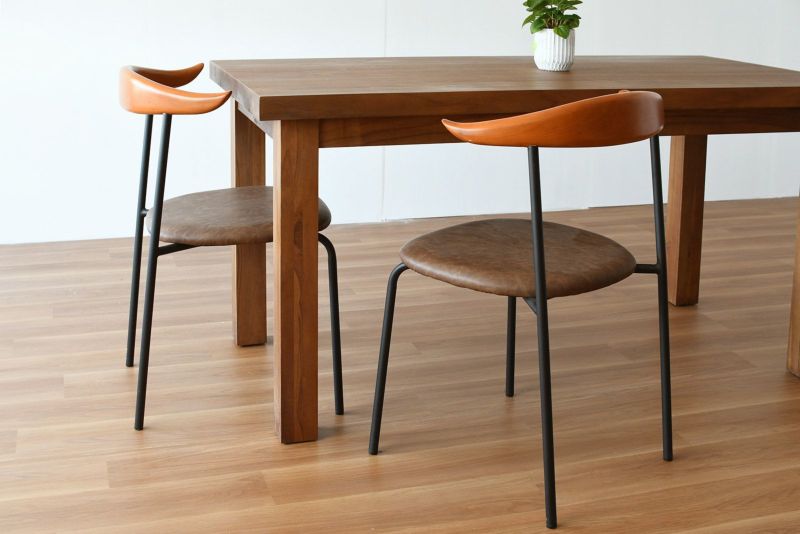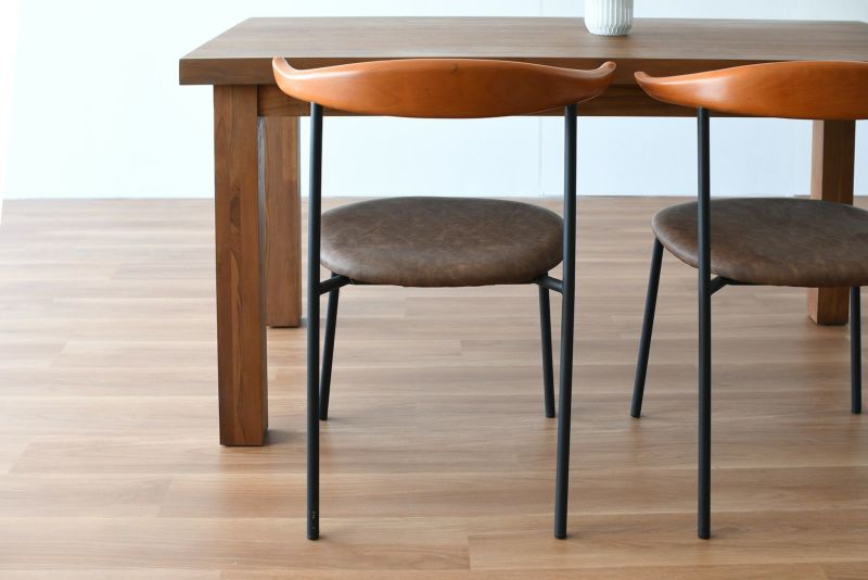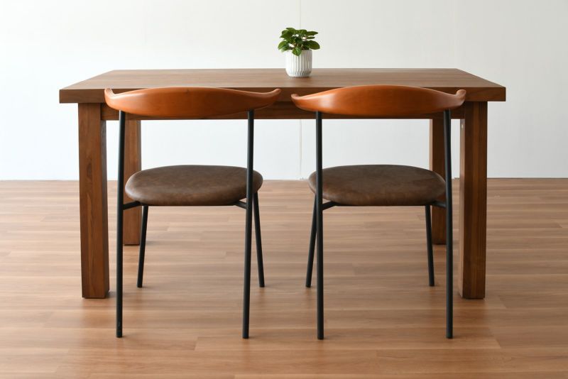 並べておいても圧迫感の少ない軽やかなフォルムです。落ち着いたブラウンカラーが天然素材の家具と相性良く、高級感のある仕上がりに。ダイニングテーブルにはもちろん、書斎やワークルームにもおすすめです。