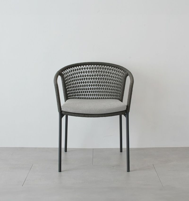 軽量でサビにも強いアルミニウムに耐候性ロープを組み合わせ、職人の手でひとつずつ丁寧に編みこまれた美しい仕上がりのチェア。洗練されたデザインは、どんなデザインのテーブルとも合わせやすいです。