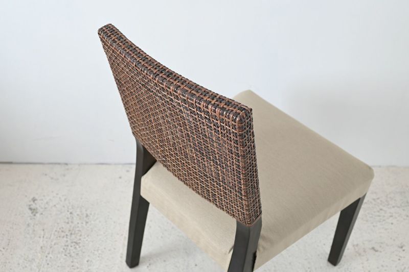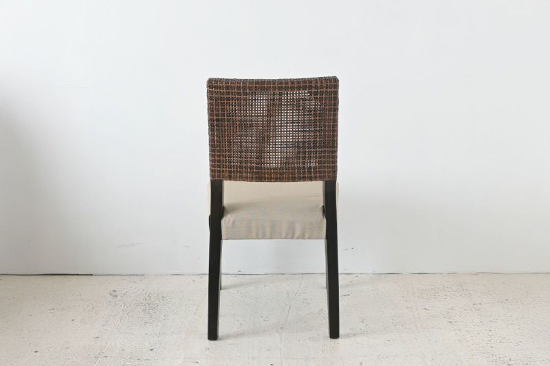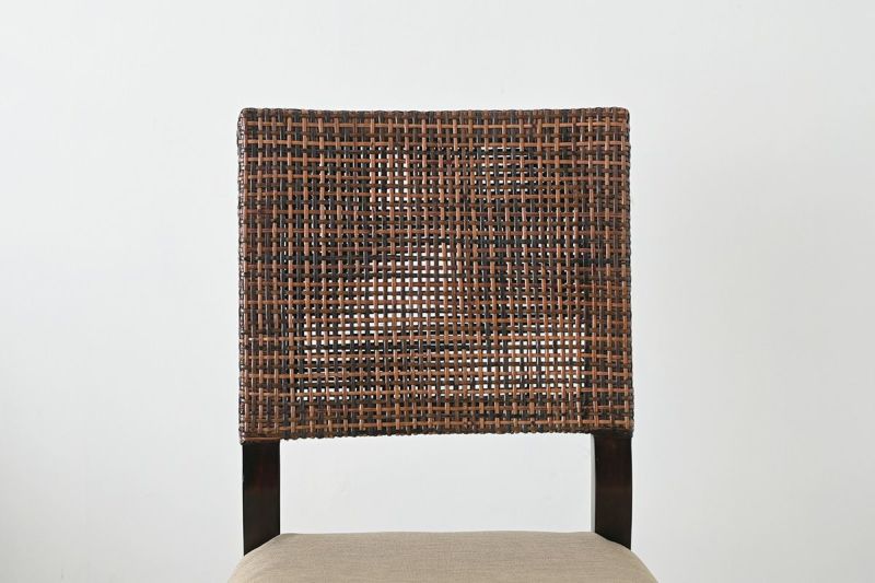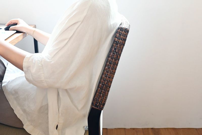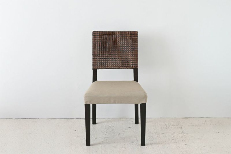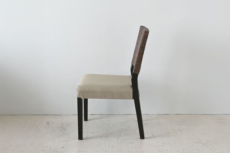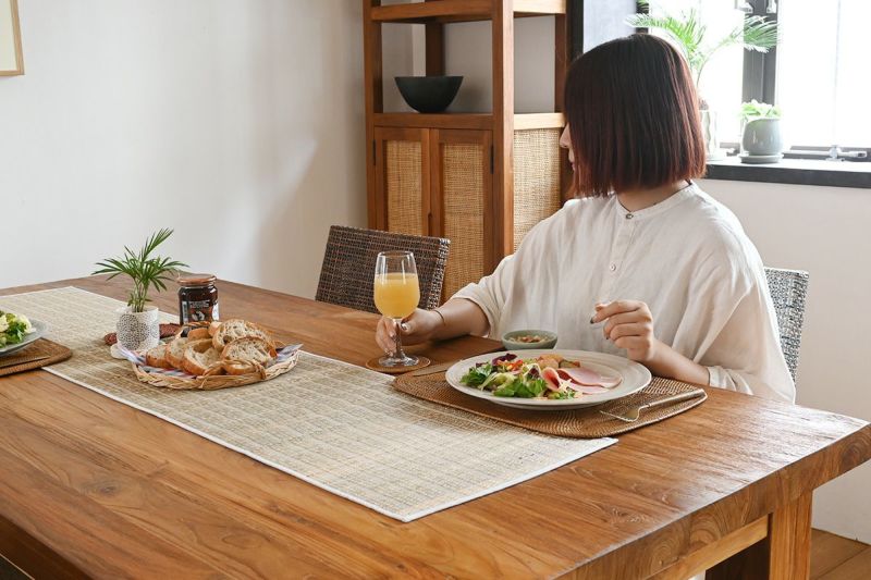 背もたれのラタンは、明るい色と濃い色のラタンをミックスして編んでいるためテーブルの色を選びません。 明るく開放感のあるスタイルがお好みなら、ナチュラルカラーのテーブルと、落ち着きのあるシックなスタイルがお好みなら、ブラウンカラーのダイニングと合わせることができます。