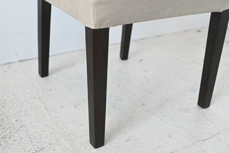 アジアン家具のチェアの中でも、すっきりと洗練されたデザインが好評を得ています。寄りかかりやすいよう適度な角度がついた背もたれ。その背もたれと座面の間のスペースが、後ろから見てもすっきりした印象にしています。ダイニングに合わせた時の見た目を考慮して、圧迫感を抑えたダイニングチェアです。