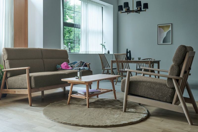 日々の暮らしに一拍の休符となるようなゆっくりとくつろげる、ハイバックタイプの一人掛けソファ。安定感があり、空間に和やかな印象を与えます。