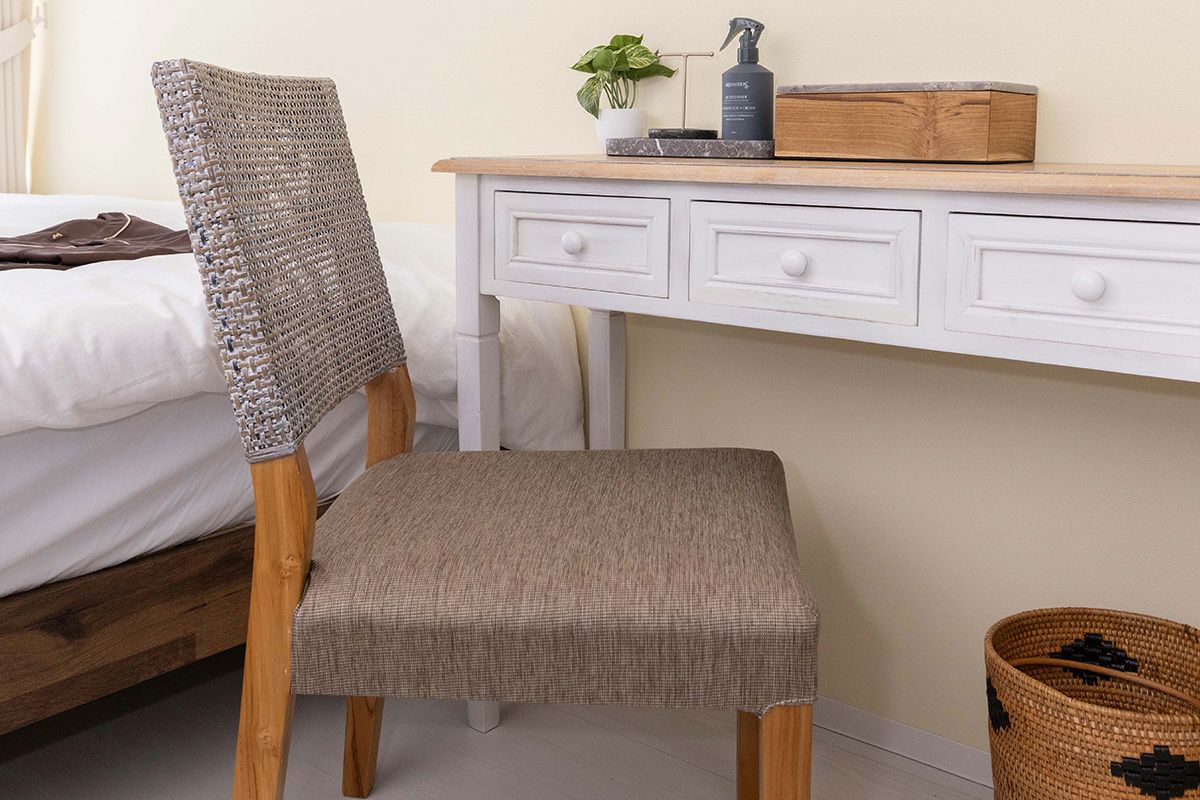 ラタンを中心にアジアの素材を使用した軽やかなリゾートスタイルのチェア。日常使いに考慮した実用的なデザインに、ナチュラル素材の組み合わせが人気です。KAJAのダイニングテーブルに合わせれば、心地よいアジアンテイストのダイニングルームが実現します。
