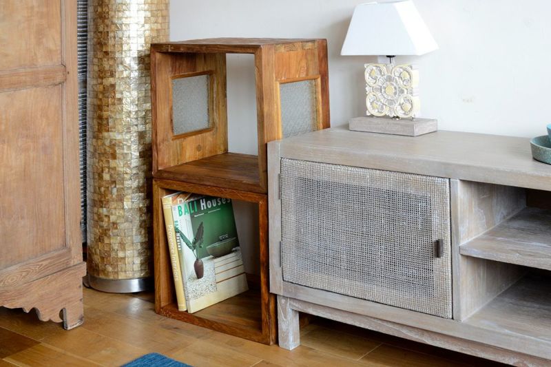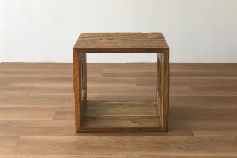 UKKO/チーク古材 キューブボックス(サイドガラス)(ナチュラル)