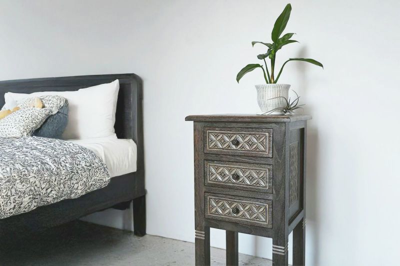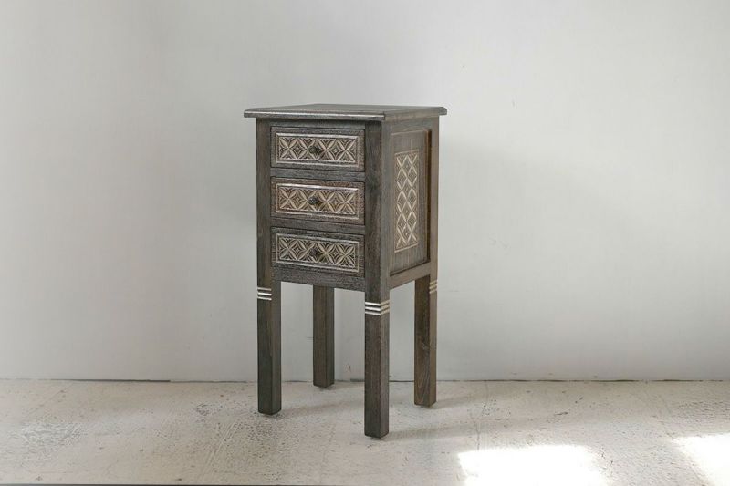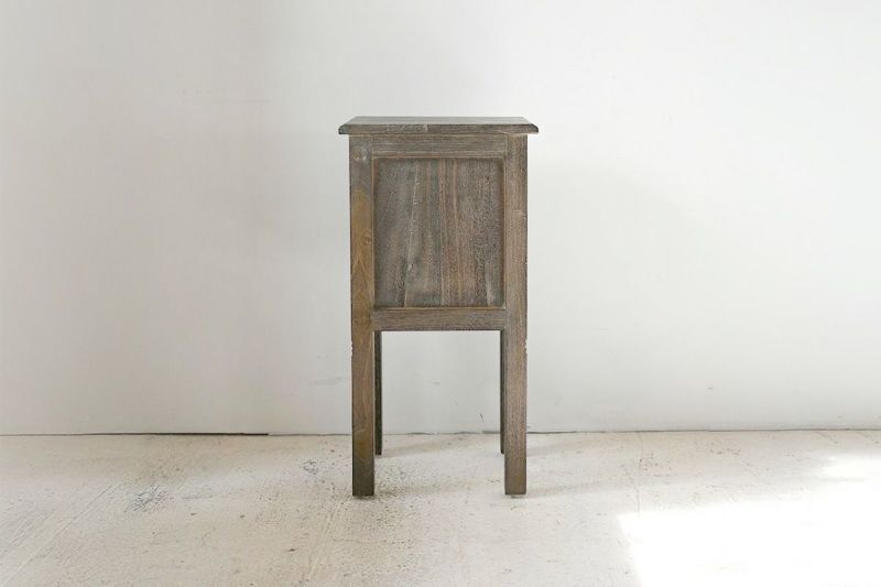 グレイウォッシュ仕上げをしたチーク材のサイドチェストです。サイドチェストの中でもコンパクトなサイズです。ソファのとなりに置いて、引き出しにはリモコン類やDVDを入れたり。ベッドの横に置いて、読みかけの文庫本やメガネを入れることもできます。 69cmの高さは、少し高めではありますが、サイドテーブル代わりとしても活躍します。天板に飲みかけのカップや時計を置くこともできます。サイドテーブルのように使えて、収納もできる、便利なアイテムです。