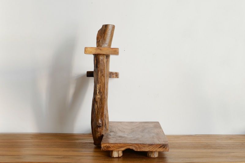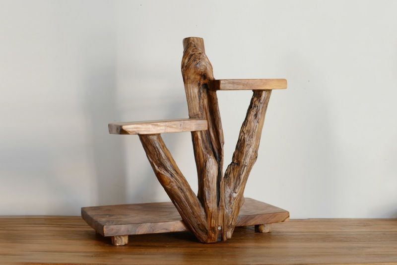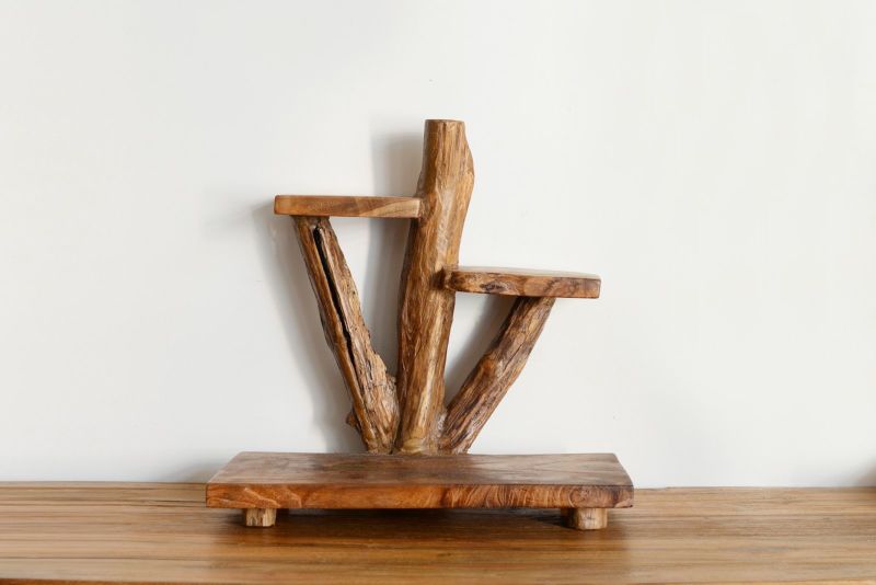 チーク材のディスプレイスタンド。植物を並べたり、お気に入りのオブジェを飾ったり、自由な使い方を楽しめます。 季節のディスプレイコーナーにしたり、インテリアオブジェに高さを出したい時にも便利です。天然素材ならではの味わい深さがあり、木の温もりが優しい印象を与えます。木の節目や曲がり具合など、形はそれぞれ個性が出ます。(掲載画像は一例であり、個別にお選びいただくことはできませんのでご了承ください)