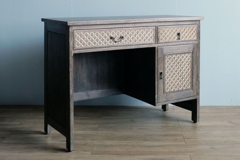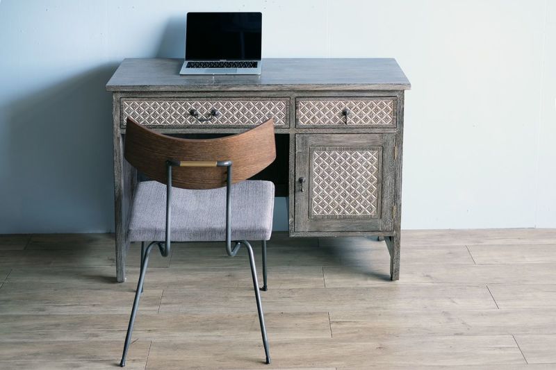 ウッドレリーフが特徴的な引き出し付きの本格デスク