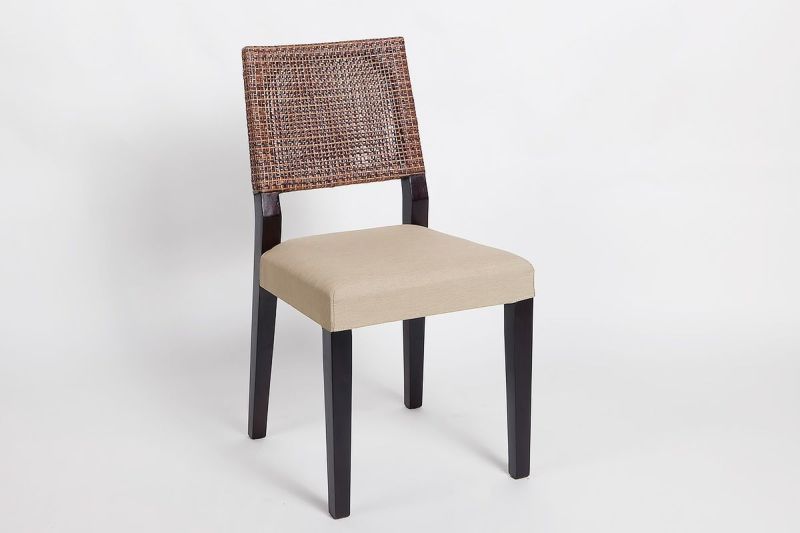 背もたれの四ッ目編みラタンが繊細で開放感を与える「カプチーノチェア」。ファブリック座面は掛け心地が良く、長時間の食事や団らんも快適に過ごせます。 落ち着いたブラウンを基調としたデザインは、チークのテーブルとも相性抜群。軽やかさと上品さを兼ね備えた、ダイニングに溶け込むチェアです。