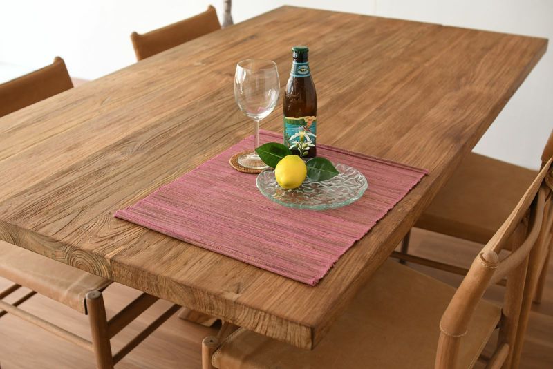 チーク材はもともと油分の多い木材のため、オイルではなく天然由来のワックスを採用。年々変わる木の表情と、その経年変化を楽しみながらお使いいただけます。ワックスには、適度な防水効果もあるため、日常使いに適しています。チーク材そのものが持つ風合いや、質感がそのまま残るワックス仕上げは、夏はひんやり、冬も適度な温度を感じられます。ただ、大量の水滴、熱には弱いので、お食事の際は、コースターやランチョンマットのご使用をおすすめします。普段のお手入れは固く絞った布巾で行い、定期的に家具用のワックスにてお手入れしていただくと、防水効果も持続します。