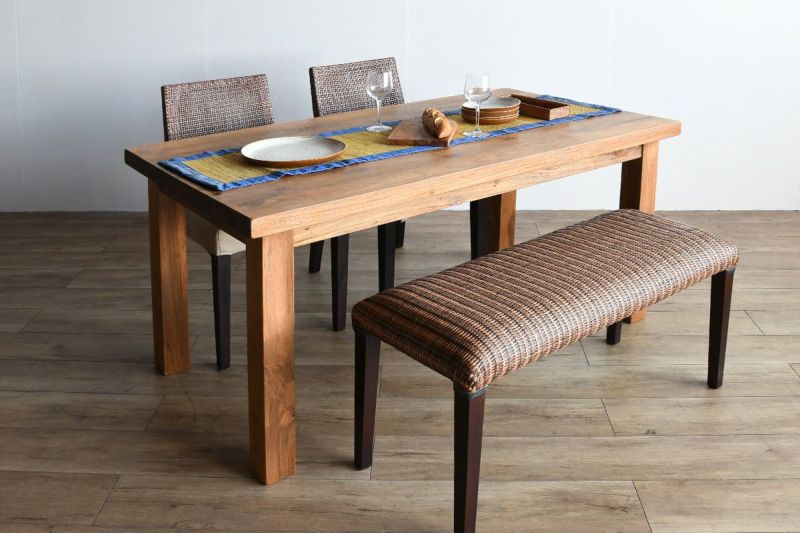 お部屋の雰囲気に自然と馴染むスタンダードなダイニングテーブルです。リゾートのような安らぎのシーンを作りたいなら、ラタン(籐)のチェアを。シンプルでオーガニックの印象に仕上げたいならウッドのチェアを。