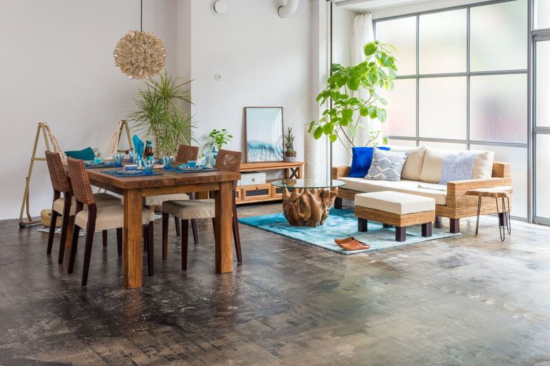 リゾートのような安らぎのシーンを作りたいなら、ラタン(籐)のチェアを。シンプルでオーガニックの印象に仕上げたいならウッドのチェアがおすすめ。お部屋の雰囲気に自然と馴染むスタンダードなダイニングテーブルです。