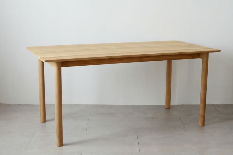 水平な天板と垂直に伸びた丸脚のデザインが優しい温かい印象を与えます。