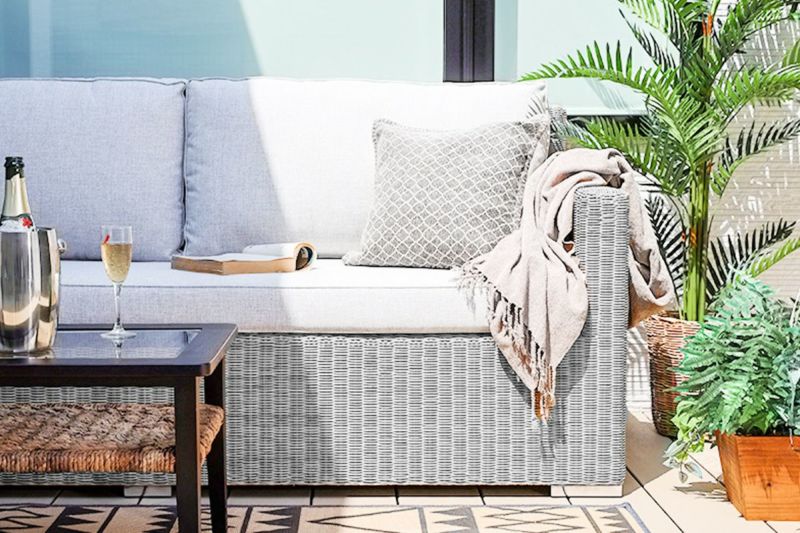 まるでラタンのような見た目と、細かな編み目が織りなす繊細さ、そして優れた耐候性。 魅力がたくさん詰まったガーデンソファです。 ※耐候性に優れていますが、雨や紫外線にあたり続けると劣化が早まります。雨ざらしの屋外でのご使用は推奨しておりません。