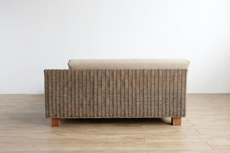 細くても強度が出る、ラタンの中でも上級なSLIMITラタンを使用することで、ラタンの編みを細かくし、上品なイメージを実現しました。どんな雰囲気にも合わせやすいアッシュカラーは、そんな上質なラタンの印象を高めます。背面もしっかりとラタンを編み込んであり、後ろから見てもきれいなデザインです。サイドウッドの位置は右側と左側と、お部屋のレイアウトに合わせてお選びいただけます
