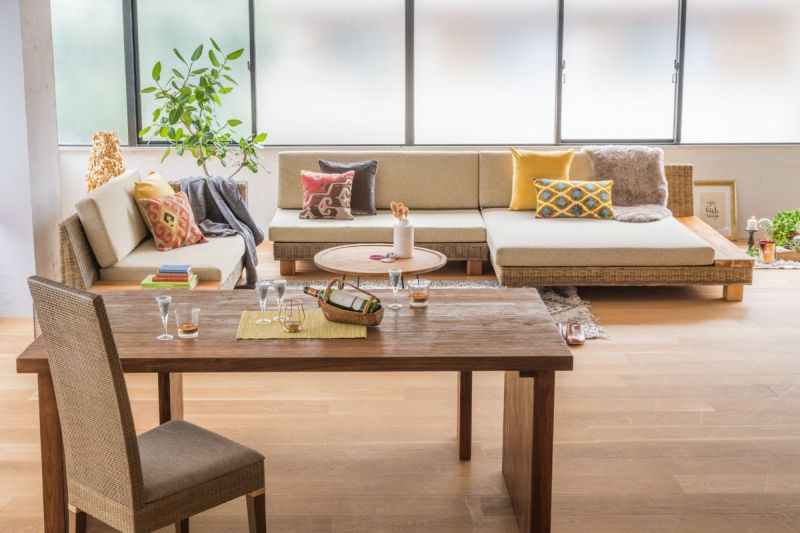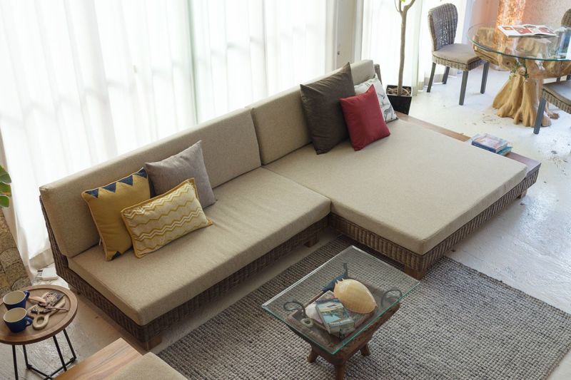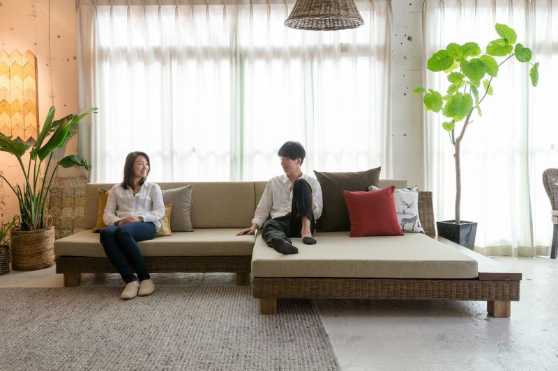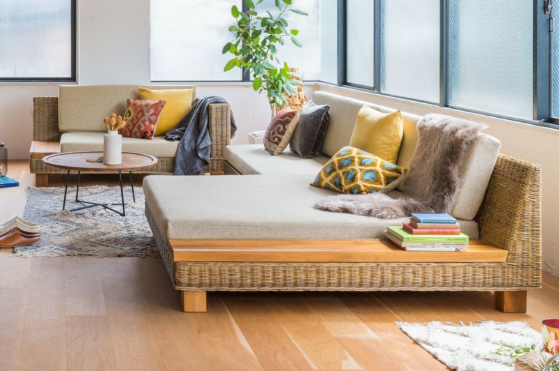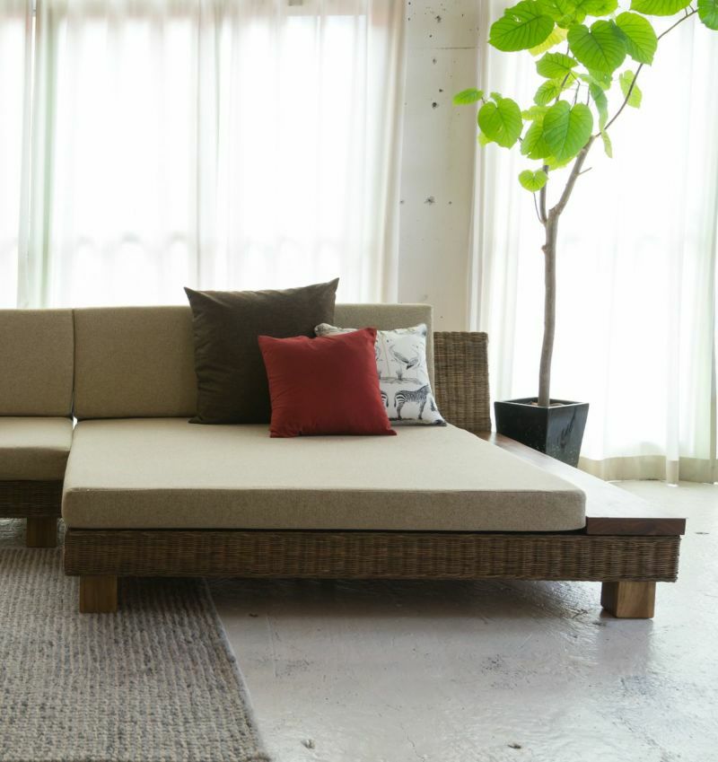 上質のラタンで作るディベッドのような広々ソファ