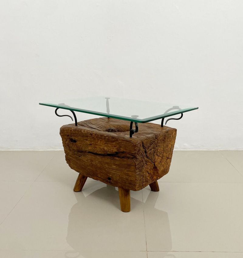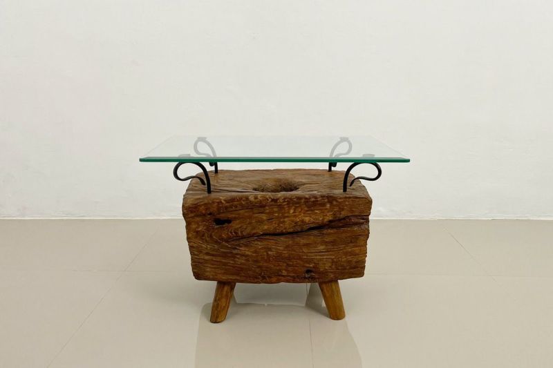 一点ずつ土台の古木の形が異なるテーブルです。ガラスはインドネシアの再生ガラスを使用しています。微かな傷やくすみのある場合もございますが、日常使用に問題ございません。予めご了承ください。