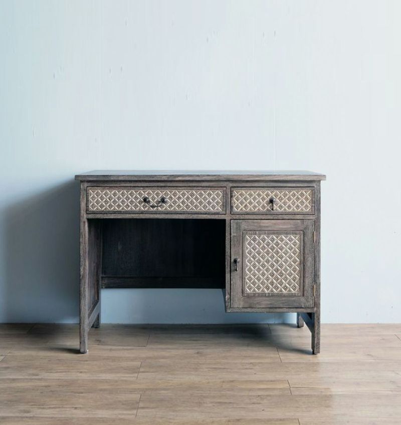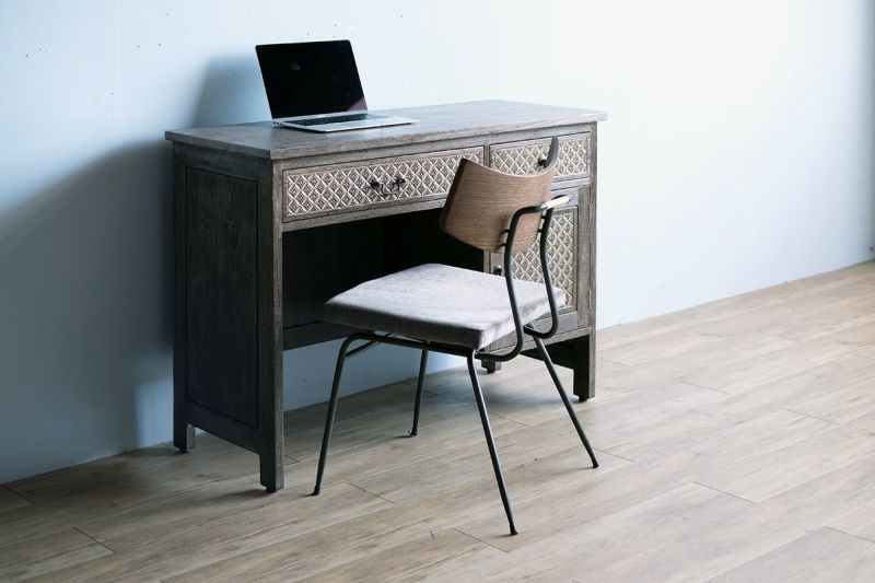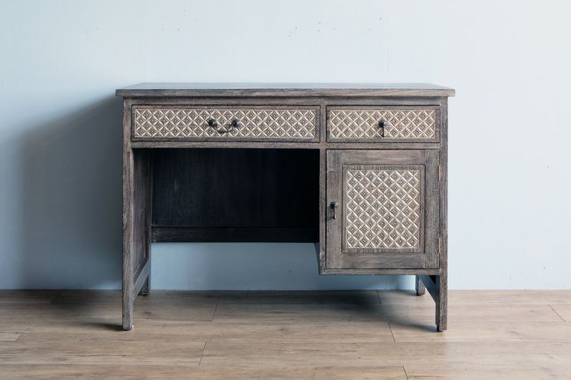 ウッドレリーフが特徴的な引き出し付きの本格デスク