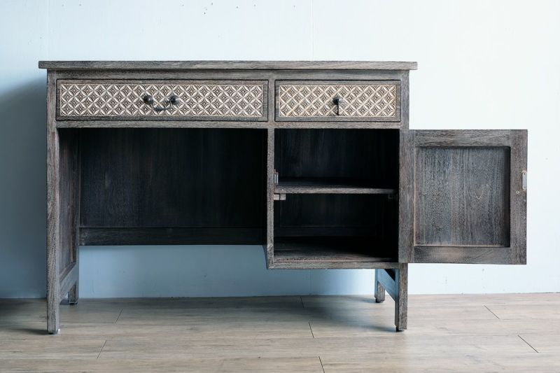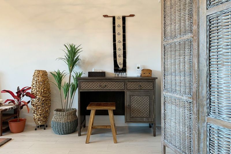 ジャワ島の小さな街の片隅に工房を構える家具職人が作るオリジナル家具「MUSCA(ムスカ)」 硬いチーク材に細かなレリーフを施すのは決して簡単なことではなく、長年の技術の賜物です。少量生産ながら世代を選ばず人気があり、KAJAが創業当初から買い付けている定番の家具です。