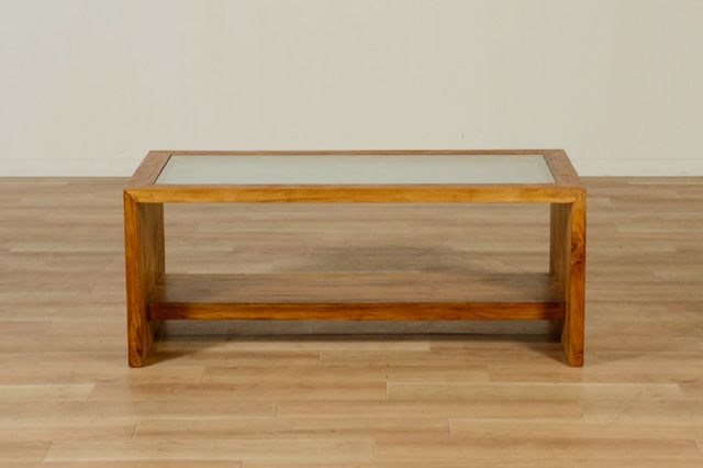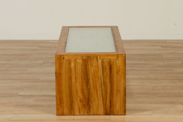 UKKO(ウッコ)シリーズの人気商品。温かみのある古材の質感と、伝統的な模様が入ったガラスのコンビネーションが癒しのリビングを実現します。 通常の透明ガラスの下に、型押しされたジャワガラスを入れた二重ガラスの天板です。作業をする際にジャワガラスの凸凹が気になることはありません。