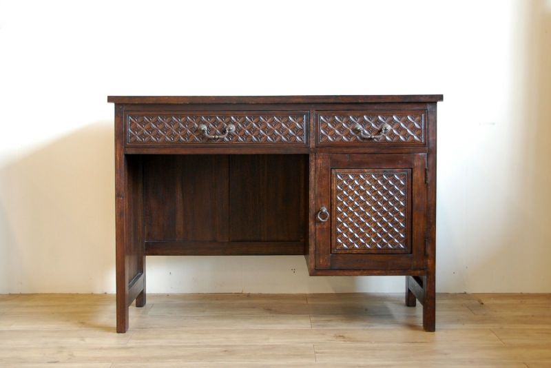 ウッドレリーフが特徴的な引き出し付きの本格デスク