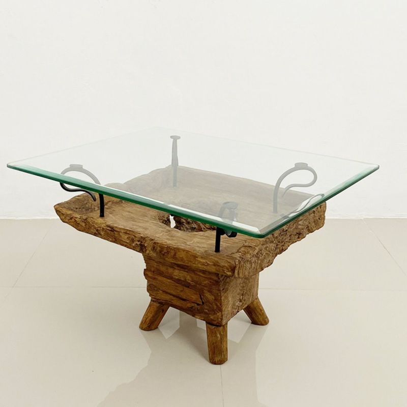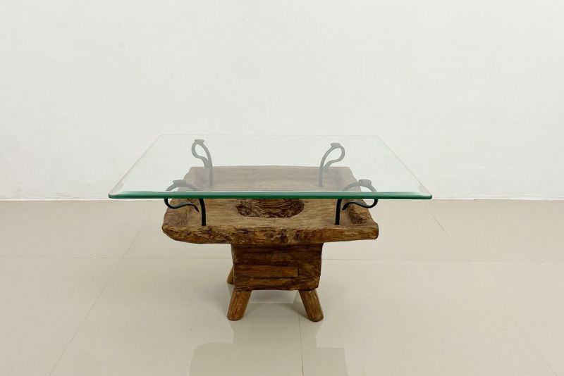 一点ずつ土台の古木の形が異なるテーブルです。ガラスはインドネシアの再生ガラスを使用しています。微かな傷やくすみのある場合もございますが、日常使用に問題ございません。予めご了承ください。