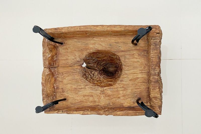 古木の土台にあいた丸い穴は自由自在にアレンジできます。この独特の形をいかしてインテリア小物をディスプレイをすれば、季節感やオリジナリティを出すことができます。ガラスの下に飾るものによって様々な表情を見せる飽きのこないテーブルです。 造花や、お気に入りのファブリック、洋書など、好きなものを飾って、自分だけの心地よいインテリア空間をお楽しみください。