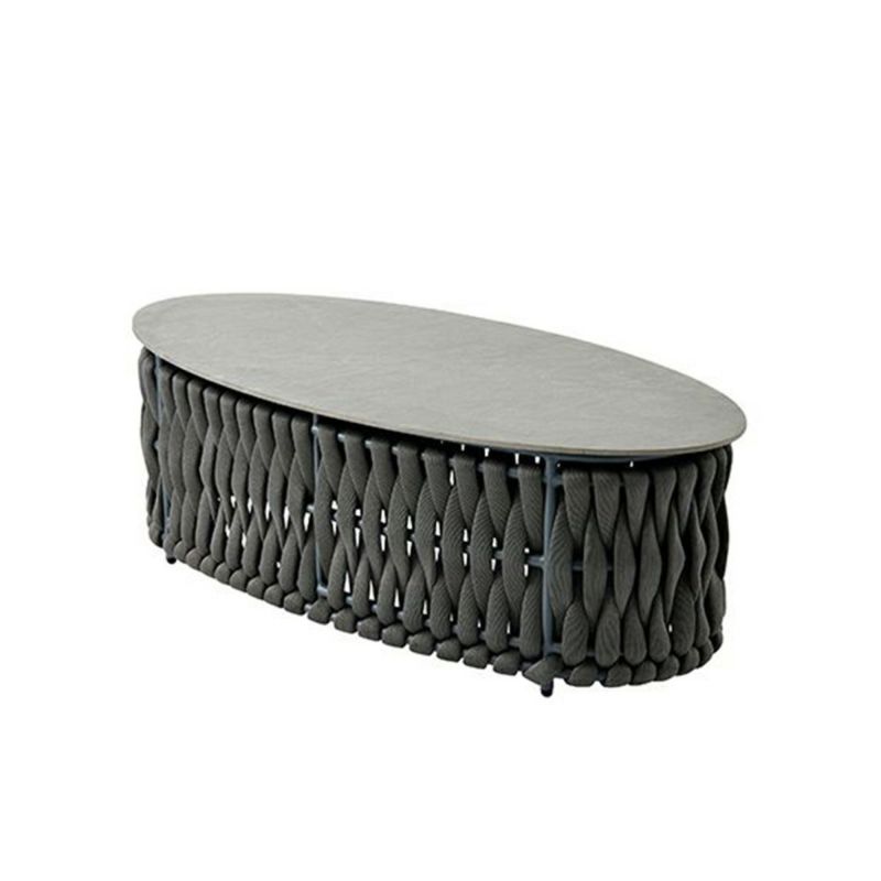 屋外でも屋内でも活躍する、ロープを贅沢に編み込んだローテーブル。幅35mmの耐水性ロープとゴムの芯材を組み合わせることで、しっかりとした耐久性となっています。また、アウトドア家具として設計されているため、耐水性に優れたロープ素材とクッションには撥水加工を施しています。ロープは速乾性があり、長期間の使用でも色褪せや劣化が少ないのが特徴です。