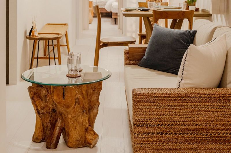 そのままでももちろん、飾る楽しみが増えるルーツローテーブル。時には植物を絡ませたり、オブジェを置いたり、個性的なデザインをより一層際立たせ、スペシャルな空間を演出してくれます。古木の独特の形をいかして自由にディスプレイをすることにより、季節感やオリジナリティを出せるのが大きな魅力。ガラスの下に飾るものによって様々な表情を見せる飽きのこないテーブルになります。もちろんそのままシンプルに何も飾らずお使いいただいても構いません。