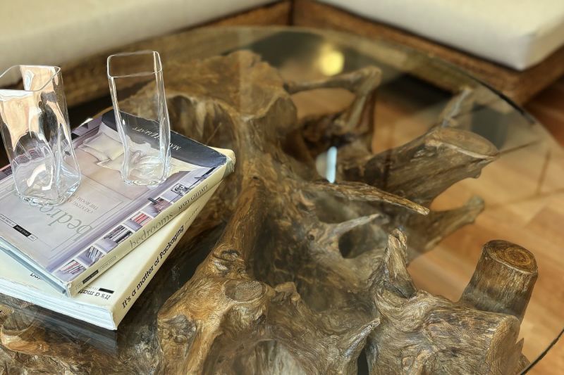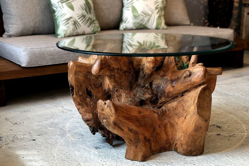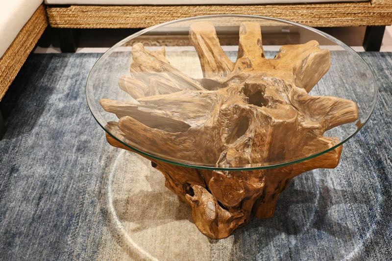 一点ずつ土台の古木の形が異なるテーブルです。ガラスはインドネシアの再生ガラスを使用しています。微かな傷やくすみのある場合もございますが、日常使用に問題ございません。予めご了承ください。