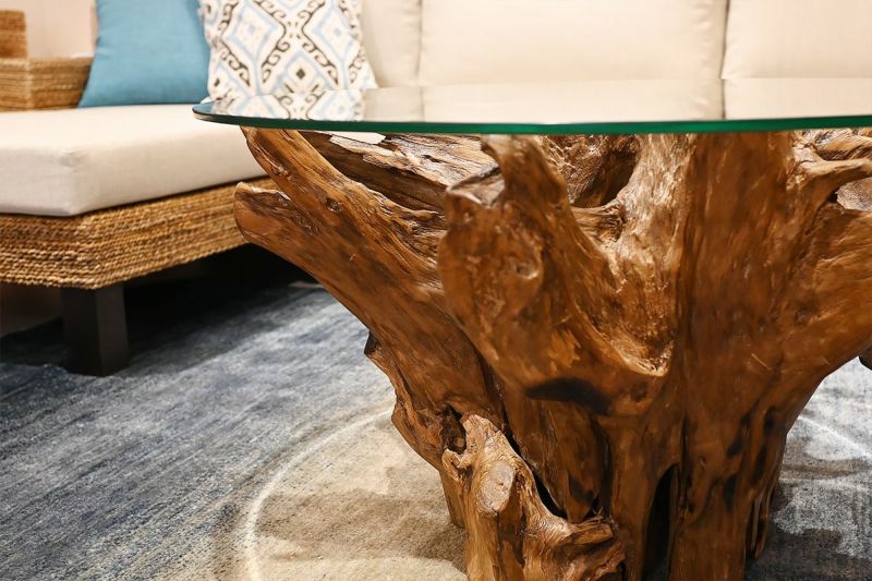自然のままのワイルドで美しい曲線をそのままに表現したローテーブルです。木の根っこ部分を使った土台は、すべて異なる1点ものです。見る角度によっても、古木の模様が様々に感じられます。自然が育むアーティスティックな表情を楽しめるローテーブルです。(画像はコーディネート例です。土台は現物と異なります)