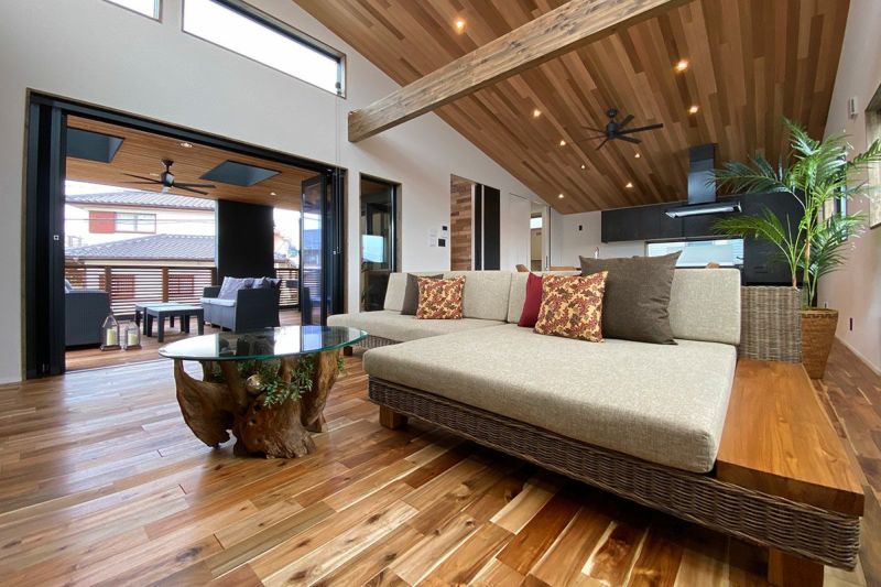 重硬で強靱、さらに耐久性・耐水性ともに優れた高級銘木のひとつです。無塗装でも表面にワックスを塗ったようなつやがあり、伸縮率も小さく狂いが少ないとされているので家具のほかにも船舶や建築材料として古くから使用されています。