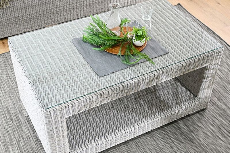 耐候性はもちろんのこと、まるで本物のラタンのような見た目のシンセティックラタンのコード。 天然のラタン家具と同様に、ひとつひとつ手作業で作られています。 幅約3mmという細いコードを、テーブルの全面に編み上げるのは、想像絶する仕事量ですが、編み目が狂うことなく均一に編み上げれるのは職人技そのもの。 職人技の光るテーブルで優雅なひと時をお過ごしください。 ※耐候性に優れていますが、雨や紫外線にあたり続けると劣化が早まります。雨ざらしの屋外でのご使用は推奨しておりません。