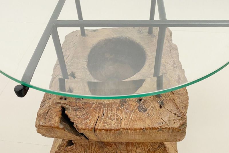 一点ずつ土台の古木の形が異なるテーブルです。ガラスはインドネシアの再生ガラスを使用しています。微かな傷やくすみのある場合もございますが、日常使用に問題ございません。予めご了承ください。