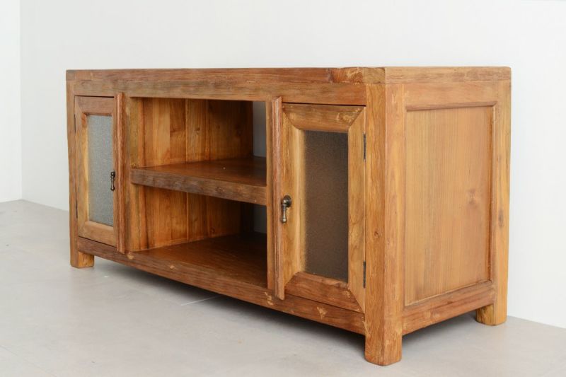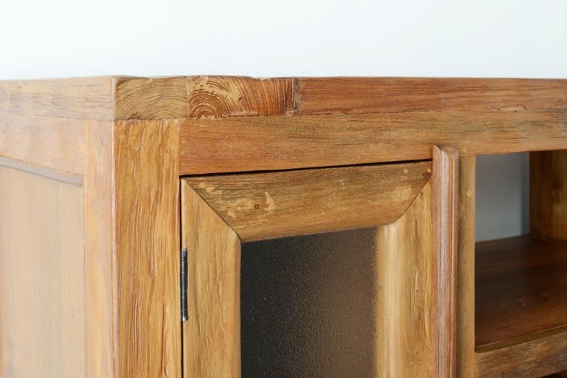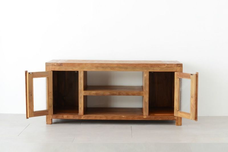 横幅が小さめなので、一人暮らしやワンルームなど、スペースの限られたお部屋にもおすすめです。ガラスを使っているので、圧迫感も少なく、お部屋を広く見せる効果もあります。無垢材の安定感とガラス扉の軽やかさが組合わさった人気のTVボードです。
