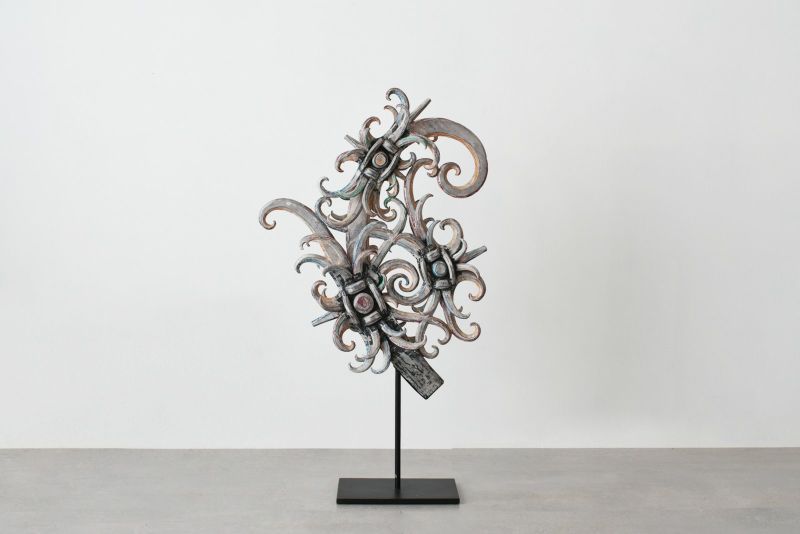 インドネシアの伝統的な装飾技法をベースに、現代的なアートとして再構築された一点ものです。クラシカルな曲線と幾何学が融合し、空間にダイナミックなアクセントを加えます。リビングやエントランスはもちろん、ショップやサロンにも映える存在感。インテリアの主役になる美しい一品です。