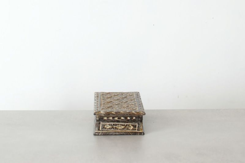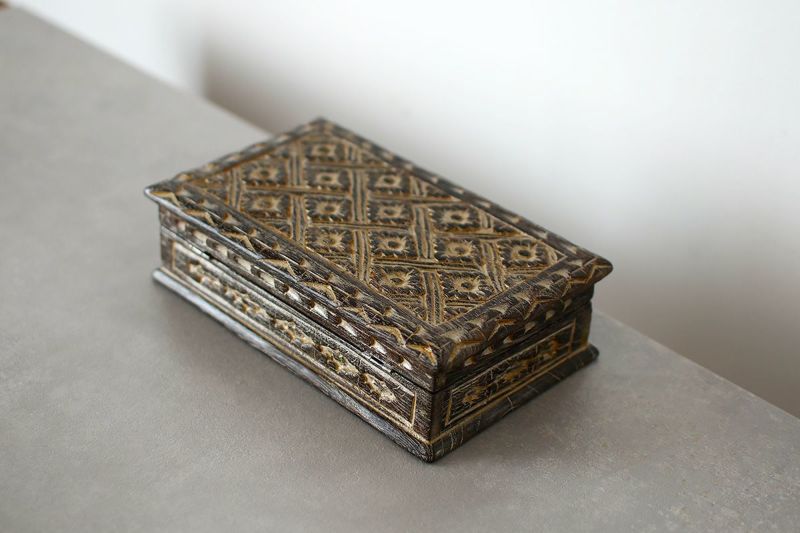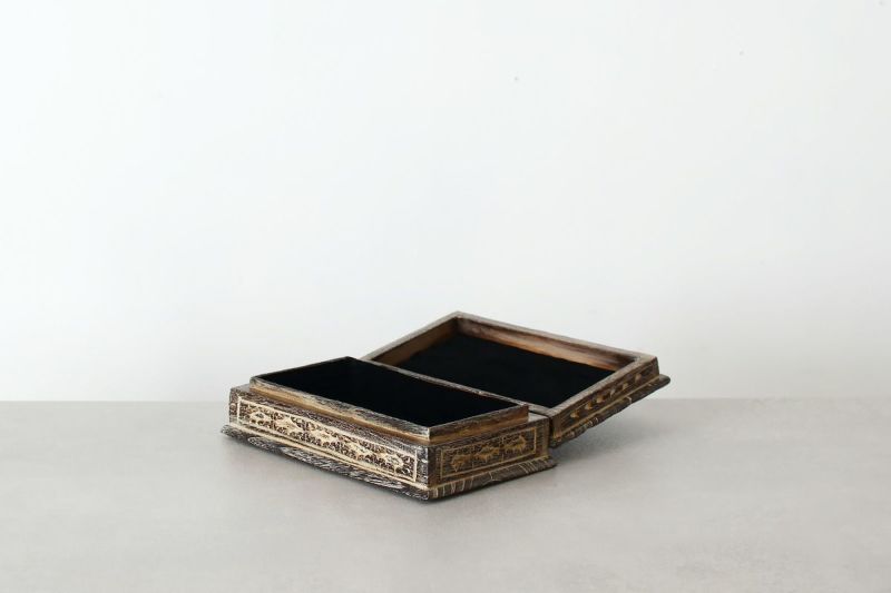 MUSCAシリーズのジュエリーボックスは、職人が一つ一つ丹念に手彫りを施した逸品です。機械では再現できない繊細なレリーフが、見る人の心を魅了します。チーク材の温もりと手彫りの美しさが調和し、どんなインテリアにも優雅な雰囲気をもたらします。