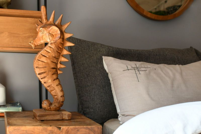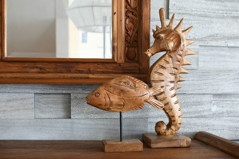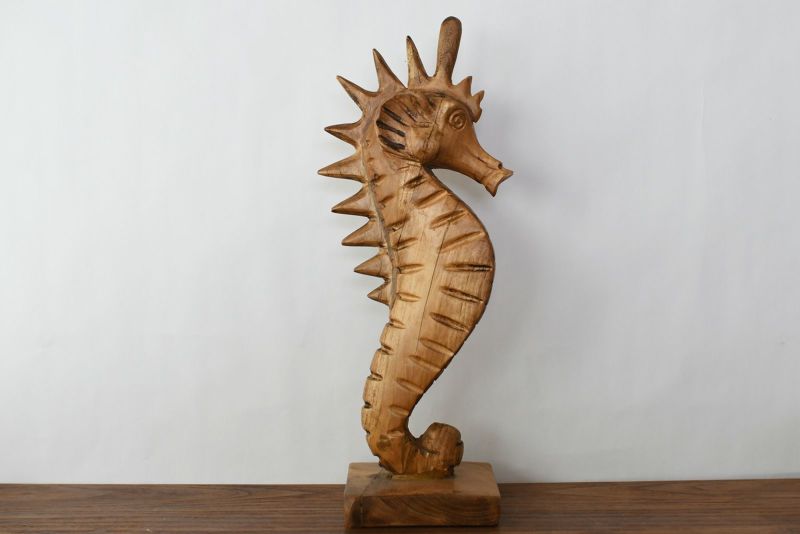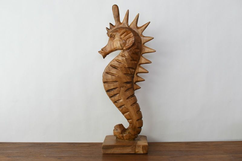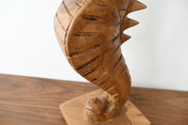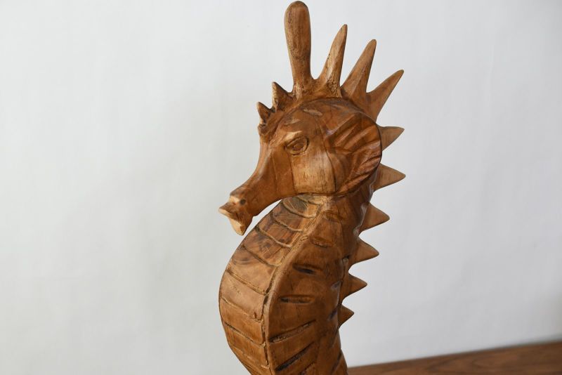 タツノオトシゴの木製オブジェです。リビングルームやベッドルームなど、お気に入りの場所に飾れば、インテリアのアクセントになります。木製オブジェなので、どこか温かみのある仕上げとなっています。タツノオトシゴのモチーフはインドネシアならでは。他ではあまり見ないオブジェです。レストランやショップなどのデコレーションとしてもおすすめです。