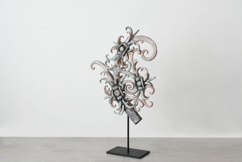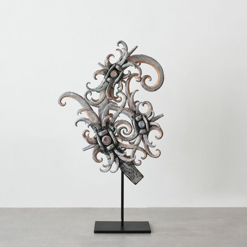 インドネシアの伝統的な装飾技法をベースに、現代的なアートとして再構築された一点ものです。クラシカルな曲線と幾何学が融合し、空間にダイナミックなアクセントを加えます。リビングやエントランスはもちろん、ショップやサロンにも映える存在感。インテリアの主役になる美しい一品です。