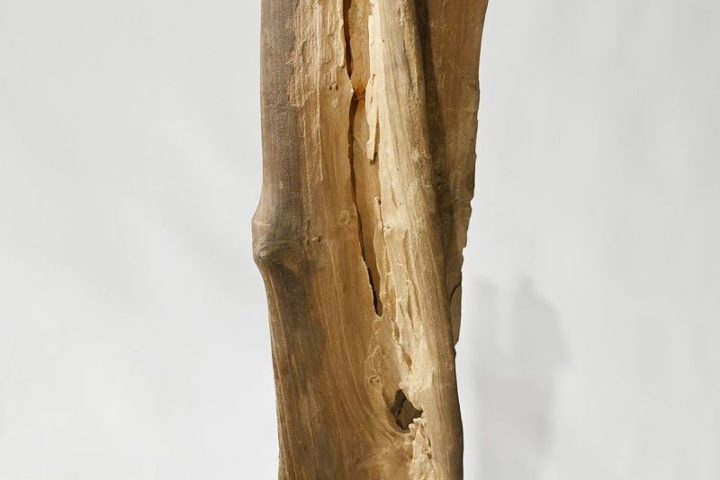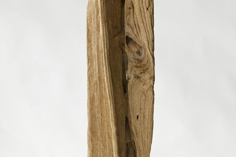 長い年月を経て味わいを増した、オールドチーク材を使用したウッドスタンド。 自然が生み出したねじれや割れ、独特の質感をそのまま活かした、まさに“天然の彫刻”ともいえる佇まいです。シンプルでありながら圧倒的な存在感を放ち、空間に静かなインパクトを与えます。