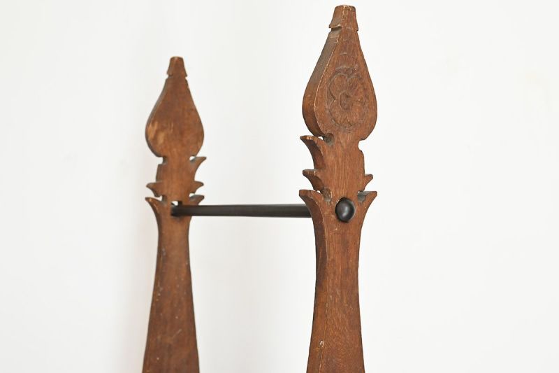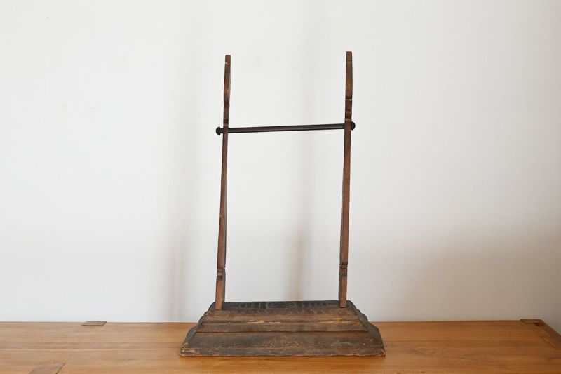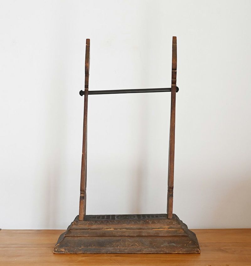 上部のバーには、タペストリーやストール、小物などを自由に掛けて楽しめるディスプレイスタンド。チーク古材の重厚な存在感と繊細な彫刻が、飾るものを引き立てながら、空間そのものに物語を添えます。ショップの演出にはもちろん、自宅のアクセサリー掛けやディスプレイ台としてもおすすめ。空間に自然と馴染みつつ、印象的なアクセントになるアイテムです。