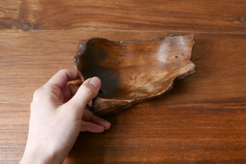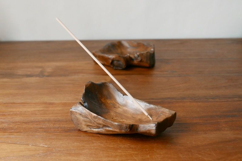 チーク材の根っこをそのまま生かした個性あるお香立てです。自然のままの形状を活かしているので同じものが2つとなく、自分だけのアイテムに愛着が湧きます。くぼみ部分はアクセサリーや鍵などを置いて、トレイにすることもできます。置いておくだけもインテリアにもなるインテリアアイテムです。