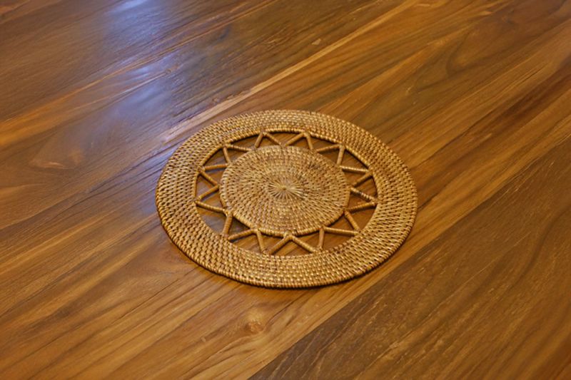 テーブルに敷くだけでなく、壁に飾るとアートのような存在感を発揮します。実用的な機能を持ちながら、インテリアとしても楽しめるので、空間に新しい魅力を加えます。観葉植物やフラワーベースの下に敷けば、そのデザインが引き立ち、ナチュラルでおしゃれな雰囲気を作り出します。